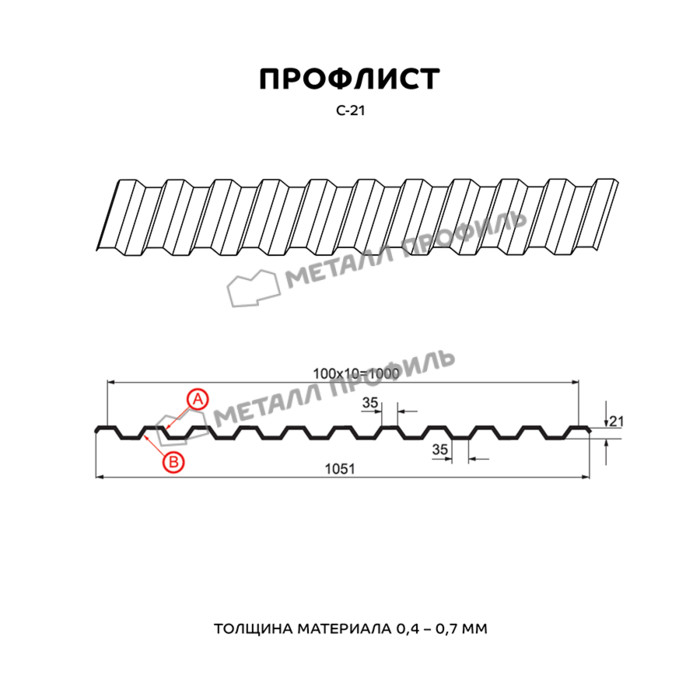 Профлист Металл Профиль С-21 0,5 PURMAN® RAL 9010 Чистый белый