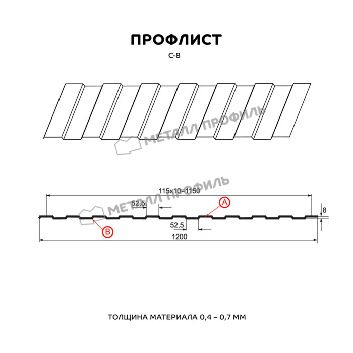 Профлист Металл Профиль С-8 0.35 и менее Полиэстер RAL 1014 Слоновая кость | A