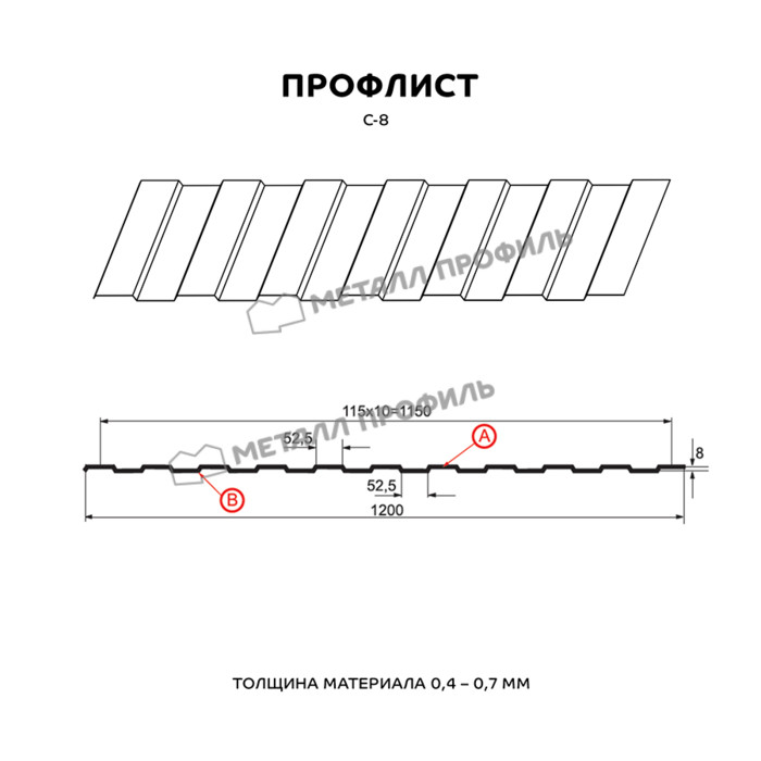 Профлист Металл Профиль С-8 0.35 и менее Полиэстер RAL 1014 Слоновая кость | B